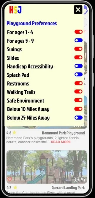 Allows users to set up preference to find the type of playground they are looking for.