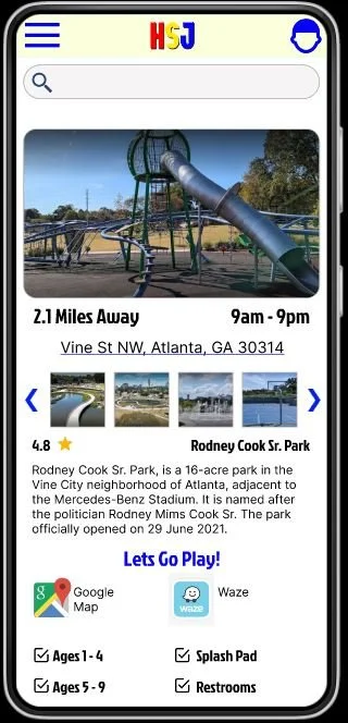 Hop Skip Jump is an Atlanta based development that looks to help parents, guardians and babysitters to spend more time outside with the little ones they love. With the Hop Skip Jump app, families have access to find playgrounds and parks that fits their needs from near and far!